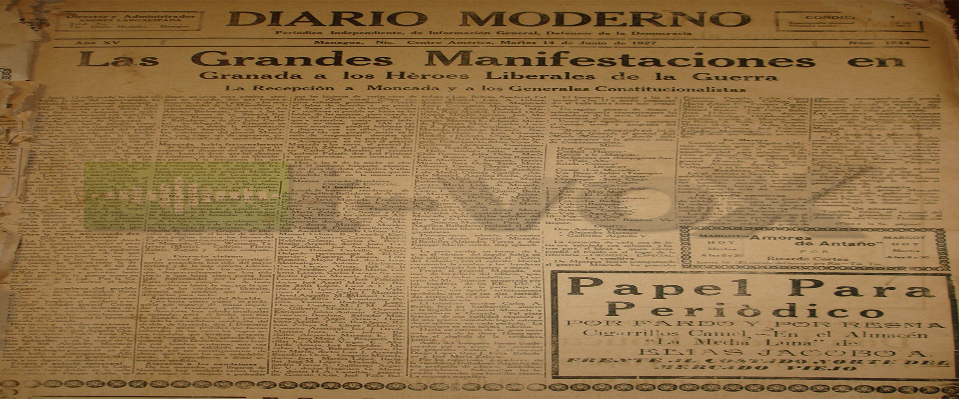 "Junio, 12-Granada, la ciudad rebelde, la cuna de conservatismo, ha tributado un grandioso homenaje –casi “una […]- al general José Martín Moncada y a los demás jefes que durante la campaña que acaba de pasar, mantuvieron con mano fuerte y vigorosa el estandarte de las libertades públicas de Nicaragua.